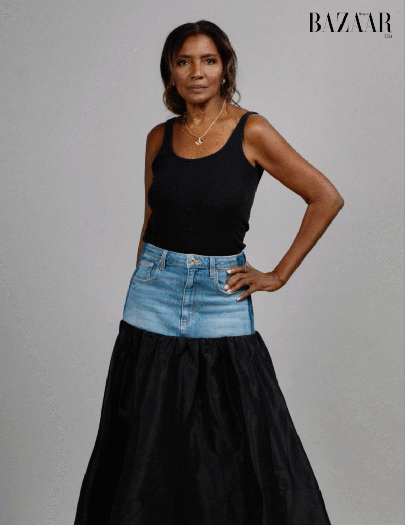 Her personal favorites speak volumes: Victoria Beckham’s precision tailoring, Cynthia Rowley’s playful elegance, Chanel’s timeless polish, and the modern edge of SIMKHAI. Accessories from Vehla Sunglasses, statement jewelry by Maria Tash and Jenny Bird, and skincare from Dr. Barbara Sturm round out a lifestyle rooted in discernment and discovery.